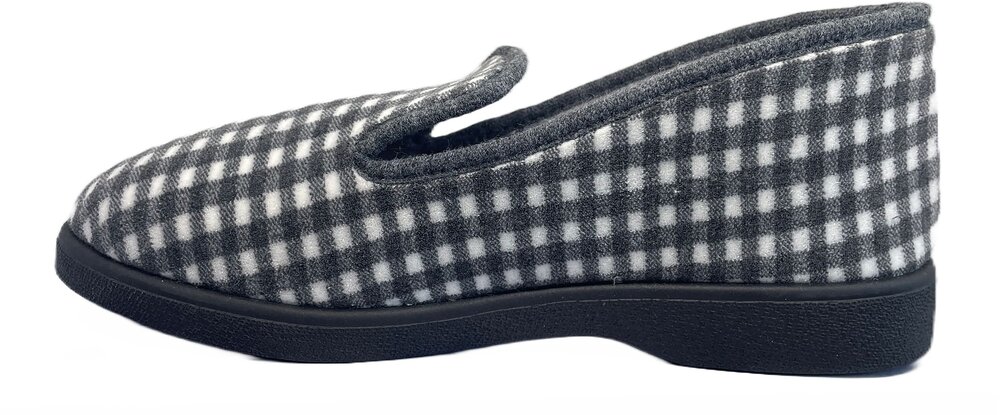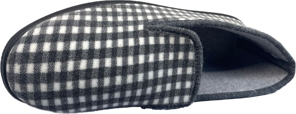 Une pantoufle Charentaise à carreaux gris et blanc masculine, fabriquée en Dordogne