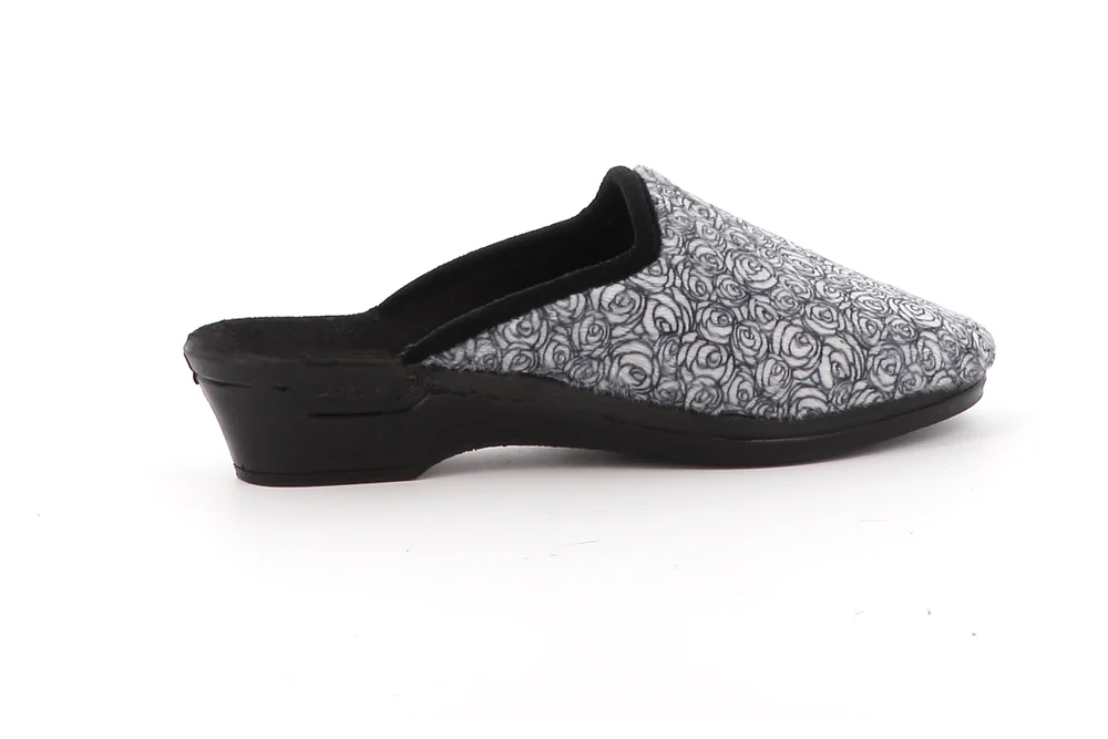 Difficile de résister à mule sabot talon Celie et son élégant dessus en velours noir, subtilement orné d’un motif floral blanc. Ce design délicat de ce chausson femme hiver apporte une touche sophistiquée à vos tenues d’intérieur, tout en faisant de ce sabot chaussure un véritable bijou de mode. La forme élancée et le talon de 4 cm ajoutent une note de féminité à cette mule d’intérieur, idéale pour celles qui souhaitent allier confort et élégance. Ce chausson femme noir et blanc a été conçu pour les femmes aux pieds fins, offrant un chaussant parfait pour celles qui recherchent une pantoufle ajustée et raffinée.
